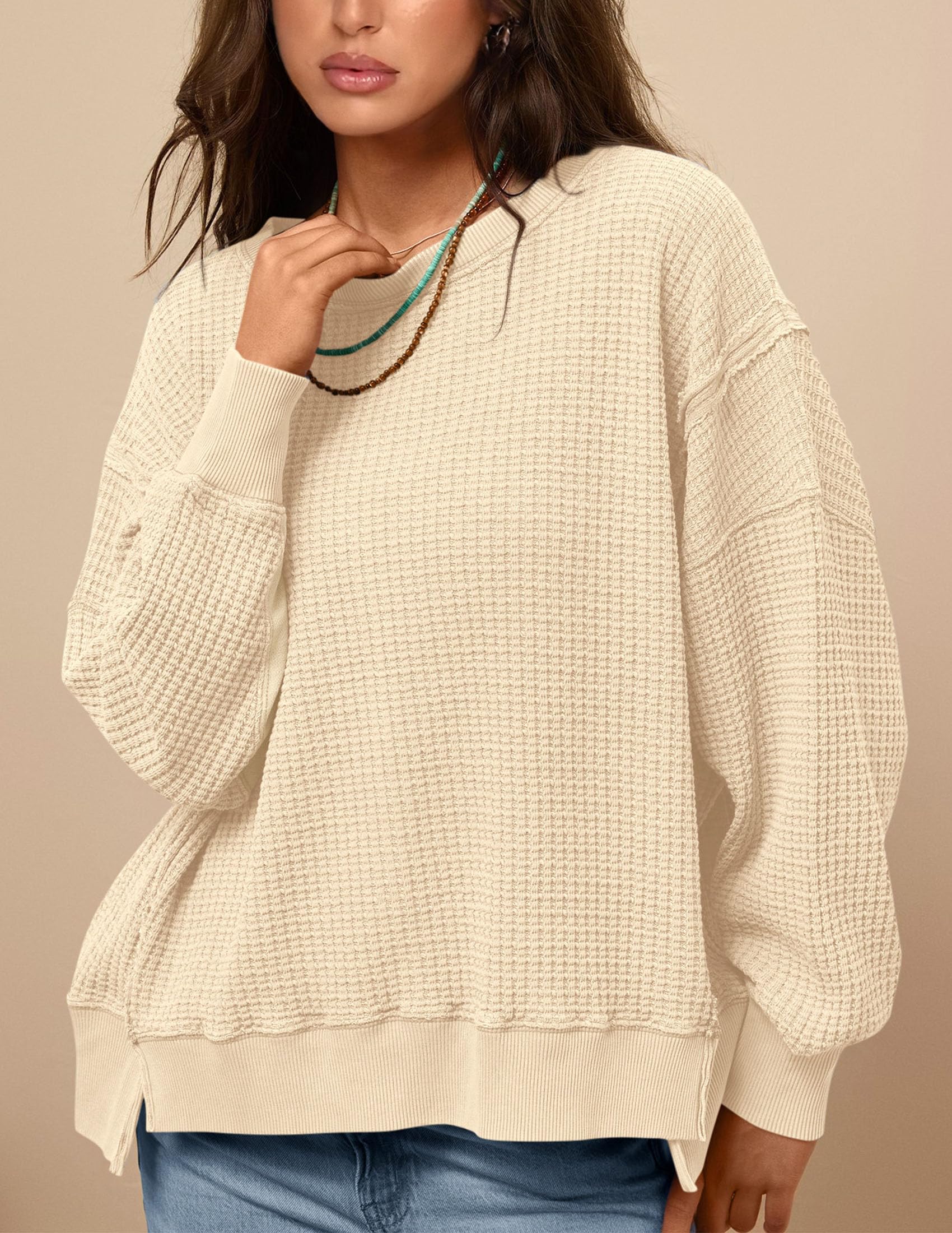 - Waffle Knit Shirts: The Drop Shoulder Silhouette Adds A Trendy Touch, While The Crewneck Design Offers A Classic Look That Never Goes Out Of Style. Boasting A High Low Split Hemline, This Pullover Top Creates A Flattering Drape Effect